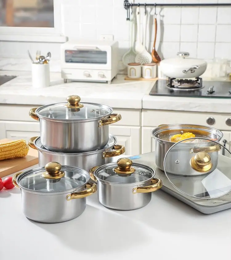 10pcs Stainless Steel Cookware Set Induction Pots Non Stick Kitchenware Stainless Steel Stew Pot With Pot Cover