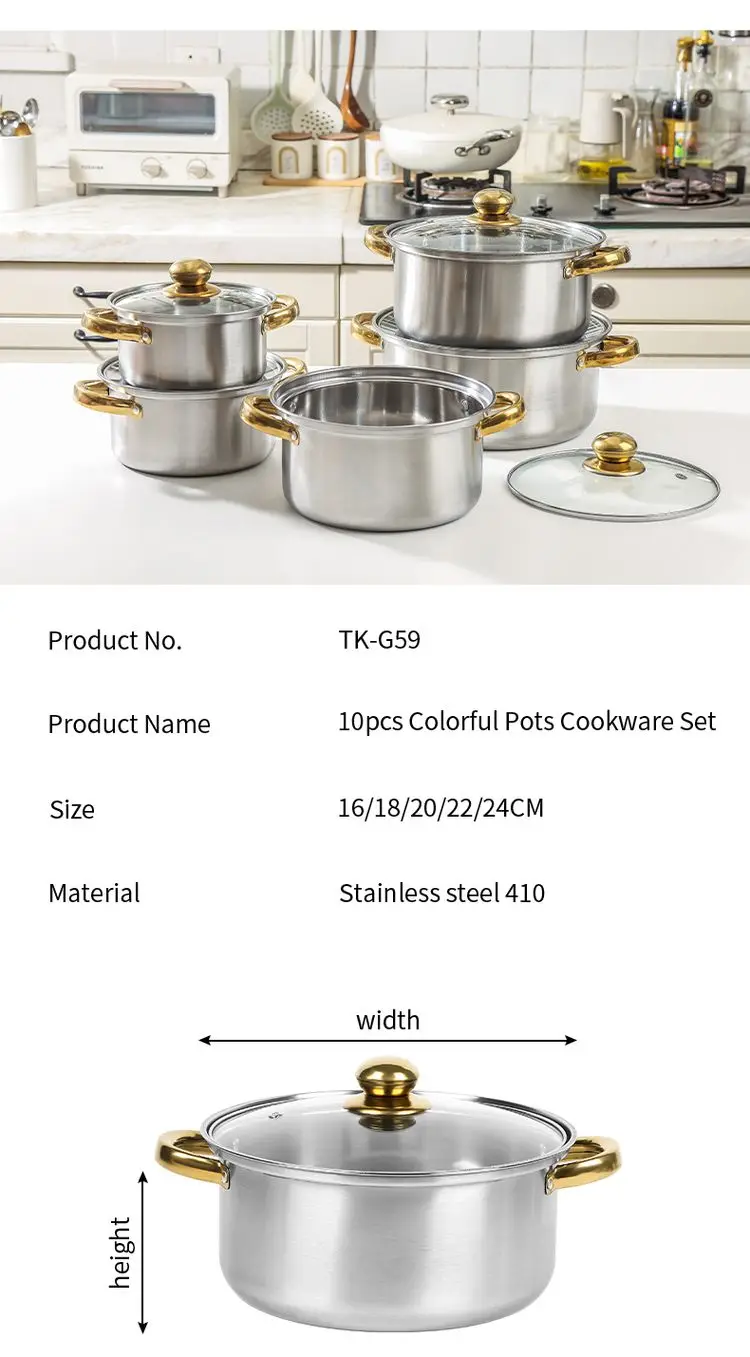 10pcs Stainless Steel Cookware Set Induction Pots Non Stick Kitchenware Stainless Steel Stew Pot With Pot Cover is available to buy in increments of 1