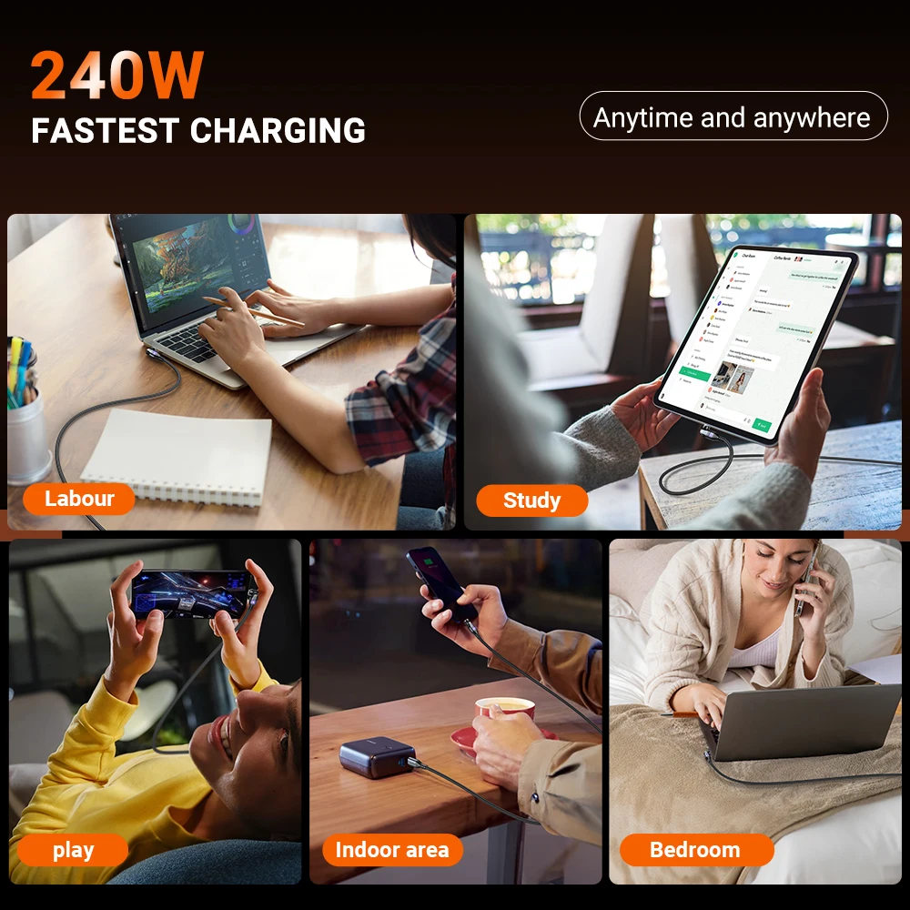 Type-C to Type-C: PD 240W (50V/4.8A Max)