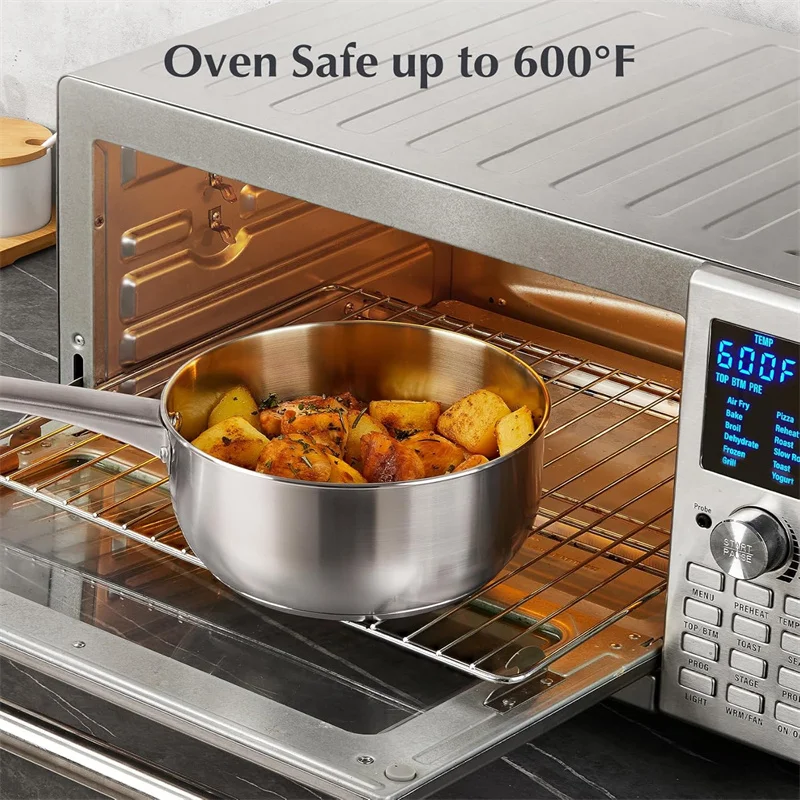 • Induction-Ready and Versatile - The saucepan set is designed to work with gas, electric, induction, and ceramic glass cooktops, ensuring compatibility across a range of kitchen setups and cooking preferences. Oven safe up to 600°F further expands its versatility.