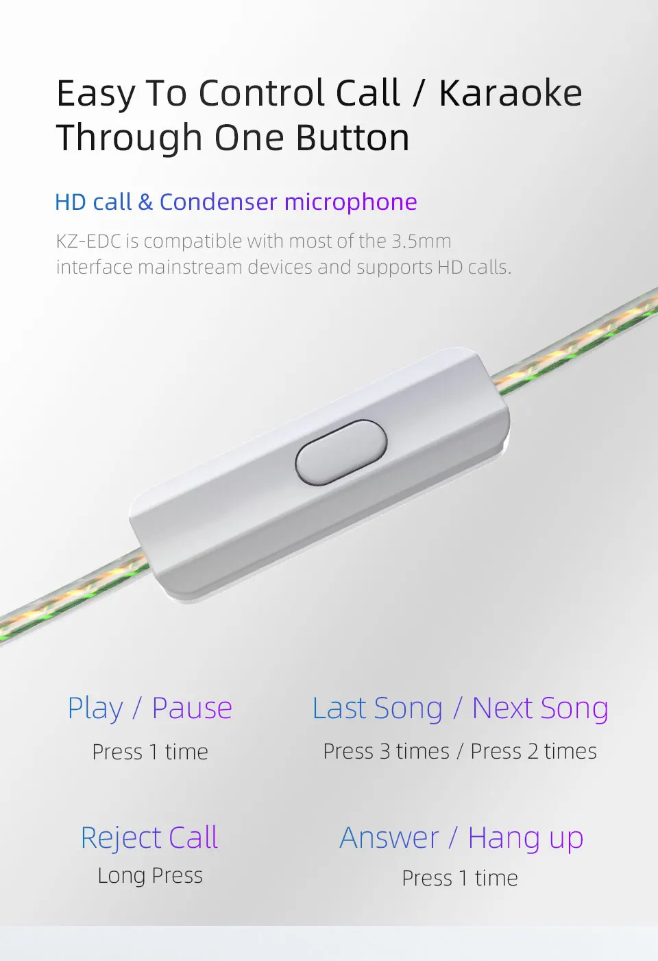 KZ EDC EDCX Wired Headset Hanging In Ear Earbuds Headphones With Microphone Game Sport Monitor Noice Cancelling Earphones