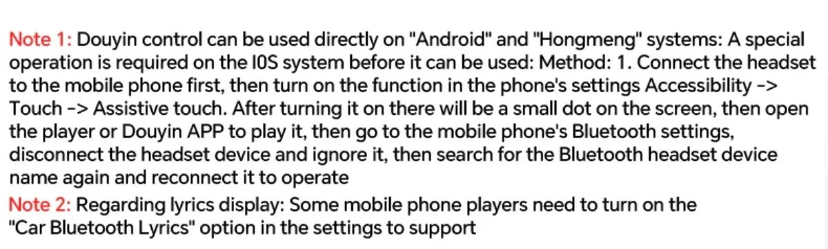 ▸ Touch Screen: Lyrics display, music control, remote photo, short-video control.
