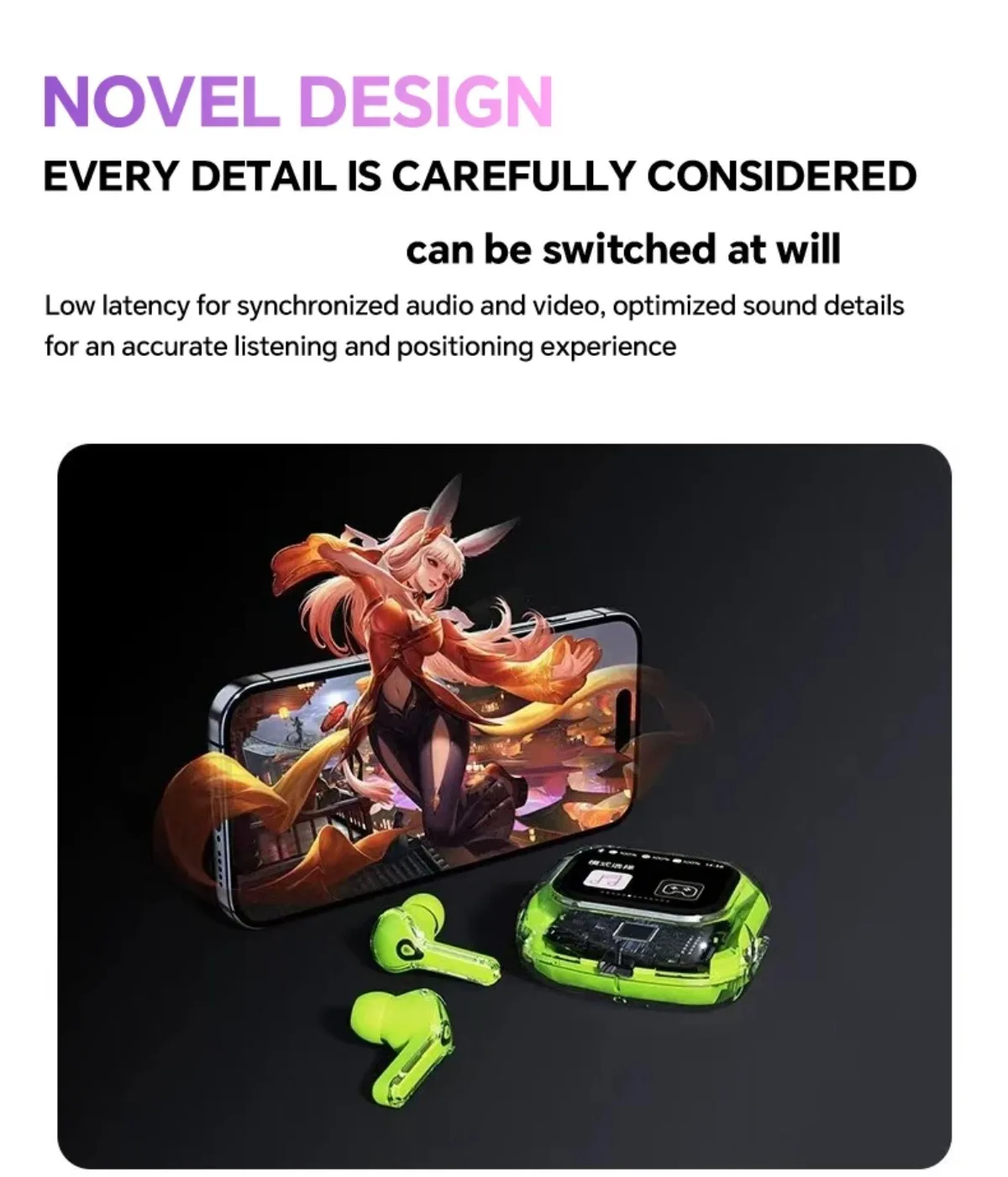 ▸ Scenario Modes: 1-tap switch (music/gaming/noise cancellation).